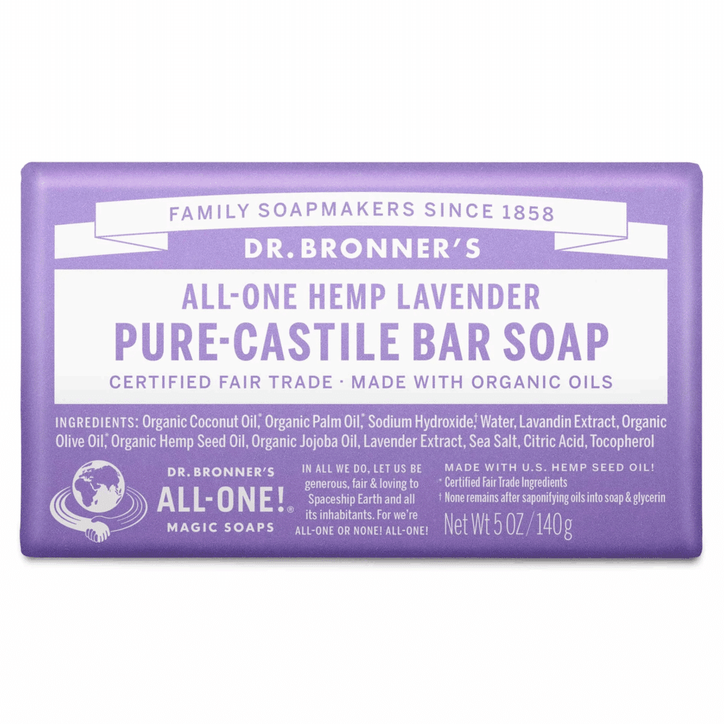 ORGANIC COCONUT OIL*, ORGANIC PALM OIL*, SODIUM HYDROXIDE**, WATER, ORGANIC OLIVE OIL*, LAVANDIN EXTRACT, ORGANIC HEMP SEED OIL, ORGANIC JOJOBA OIL, LAVENDER EXTRACT, SEA SALT, CITRIC ACID, TOCOPHEROL.